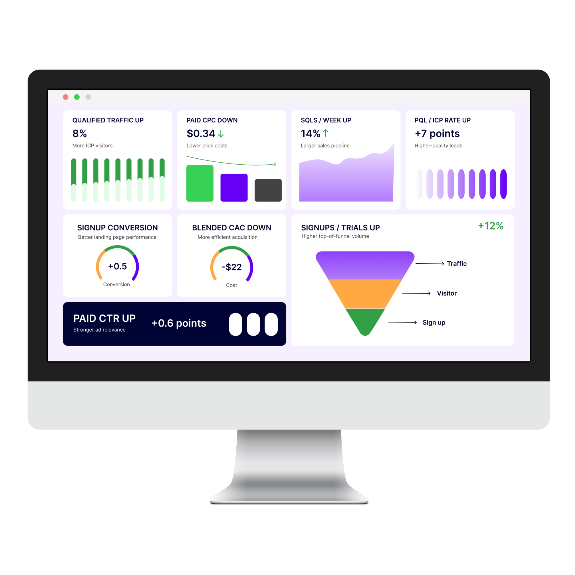For B2B SaaS teams moving from traction to predictable revenue. Tighten activation, SQL quality/velocity, and CAC payback.