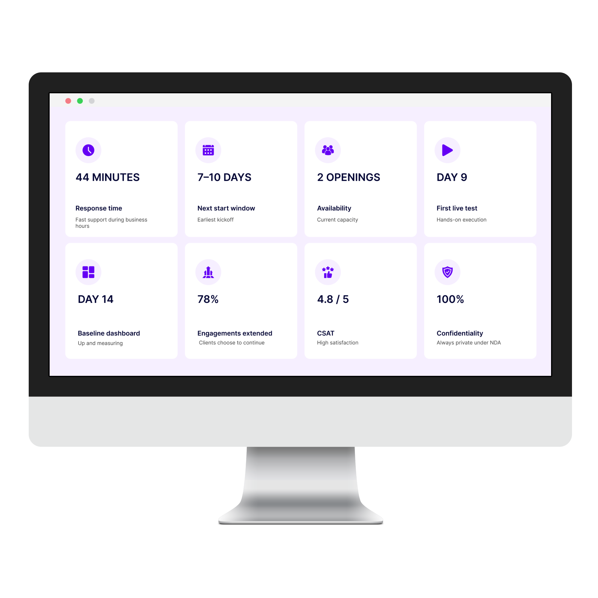Most clients ship their first test within 10 days. Many see measurable lift in 60–90 days.